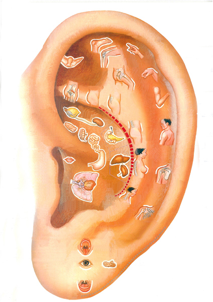 Öron akupressur (frön på tejp som får sitta kvar 1-2 veckor, smärtlindring, avvänjnings problematk) 10 min 400:-